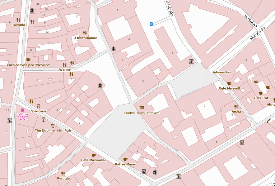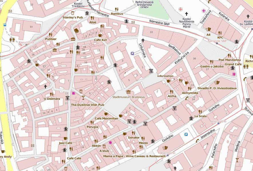 Mithilfe von diesem praktischen Primatialpalais Stadtplan finden Sie die zahlreichen Plätze und Straßen in Bratislava oder sehen Sie wie zahlreiche weitere Bratislava Touristen Kartenausschnitte um.