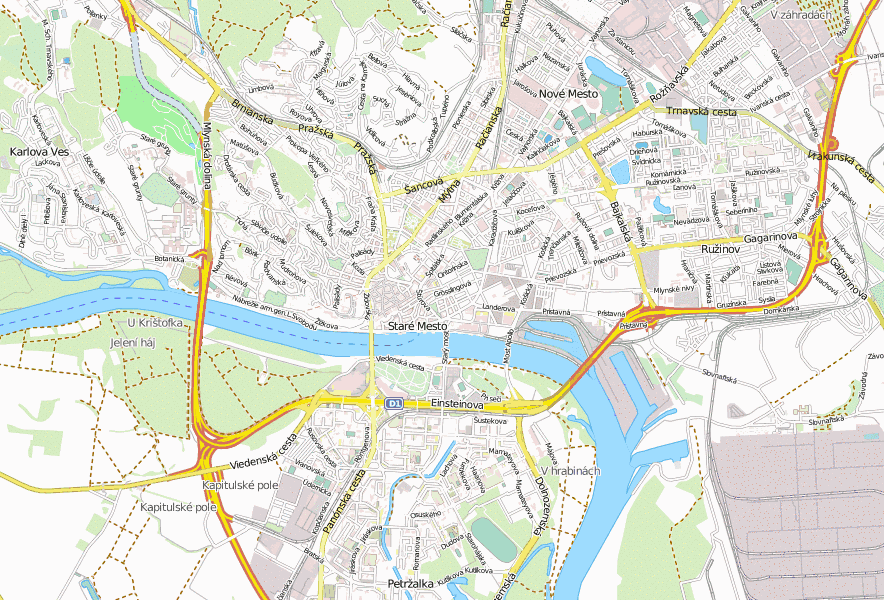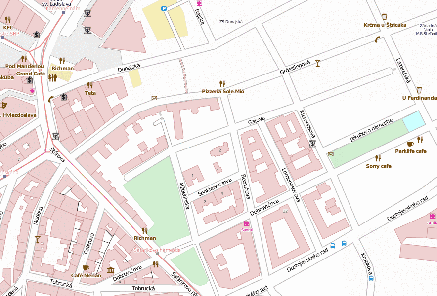 Durch den übersichtlichen St. Elisabeth -Stadtplan entdecken Sie die zahlreichen Straßen und Plätze in Bratislava oder besuchen Sie wie andere Bratislava Urlauber Regionen nahe.