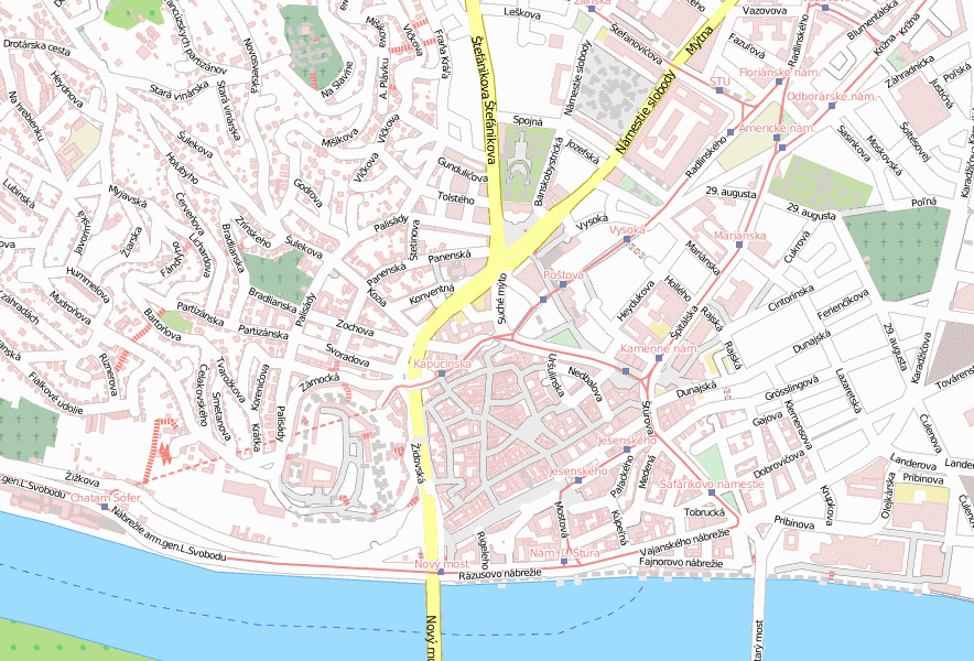 In der näheren Umgebung befinden sich schöne Orten wie etwa Franziskanerkirche , Michaelertor und Trinitarierkirche . Häufig betrachtet sind darüber hinaus die folgenden Pläne: Schlossgrund , Zoologischer Garten Bratislava, Slavín und St. Elisabeth