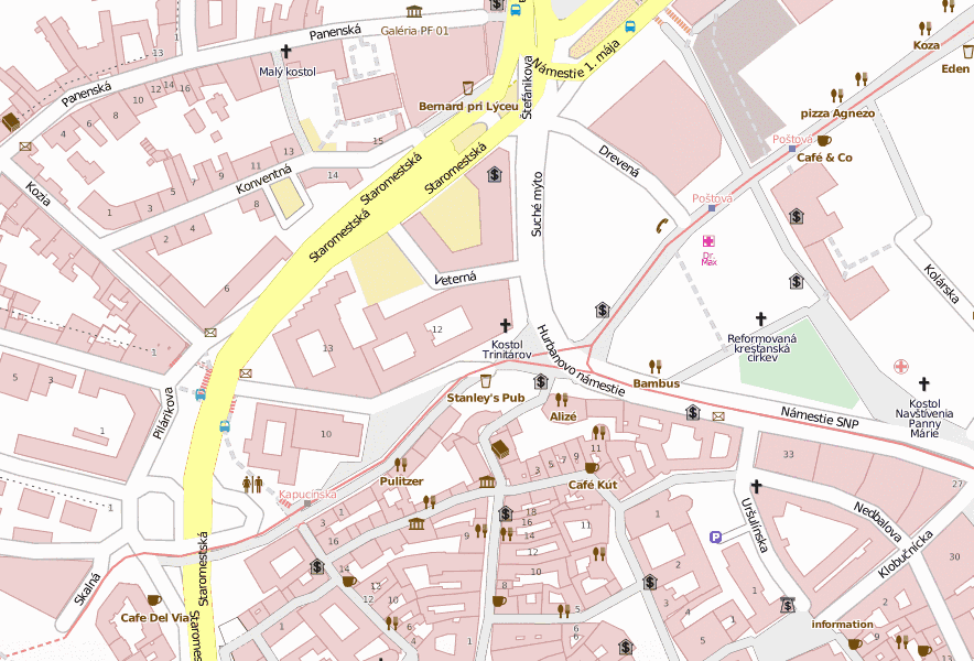 Mit dem hilfreichen Trinitarierkirche -Stadtplan entdecken Sie die Plätze und Straßen in Bratislava oder sehen Sie wie weitere Bratislava-Reisende die Gebiete nahe.